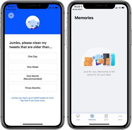 Par exemple, pour Twitter l’app peut effacer tous les tweets vieux de 1 semaine, 1 mois ou 3 mois. Il est toutefois possible de les sauvegarder sur l’iPhone, ainsi que sur Dropbox et iCloud.