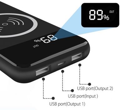 Promos flash : batterie 10 000 mAh avec recharge sans-fil Qi et afficheur numérique de charge à 21 € seulement et autre offre 12 000 mAh
