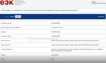 De nouveaux iPad pourraient arriver tout bientôt sur le marché. En effet, La Eurasian Economic Union (EEC) en enregistré de nouveaux certificats de produits provenant d’Apple et faisant référence à de nouvelles tablettes. D’autre part, la dernière version bêta d’iOS 12.2 inclut elle aussi de nouvelles identifications d’iPad, ainsi que d’un nouvel iPod touch :