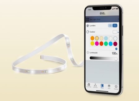 Eve Systems enrichit donc son catalogue d’accessoires connectés HomeKit en ce début d’année 2019. Son nouveau bandeau LED, le Energy Light Strip, vu à l’IFA de Berlin il y a quelques mois, est désormais disponible à la vente. Il est très semblable à ce que propose la concurrence, dont Philips, grand spécialiste des luminaires connectés, mais aussi Koogeek avec son Smart Ruban disponible là et que l’on est d’ailleurs en train de tester à la rédaction.