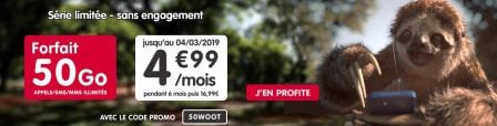 Rares sont les surprises en ce moment de la part des opérateurs de téléphonie mobile en France. Les promotions, de plus en plus fréquentes, se ressemblent de plus en plus. Mais alors qu’on pensait que plus aucun forfait illimité n’allait passer sous les 10 euros en 2019, voilà que deux opérateurs viennent contredire cette prévision coup sur coup. La Poste Mobile et sa promo lancée il y a peu sont suivis maintenant de NRJ Mobile, qui brade son forfait Woot 50 Go sous les 5 euros :