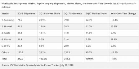 L’IDC, institut de recherche et d’analyse de marché, a partagé les chiffres de ventes de smartphones dans le monde, pour le deuxième trimestre de cette année. 342 millions de smartphones ont été vendus pendant cette période.