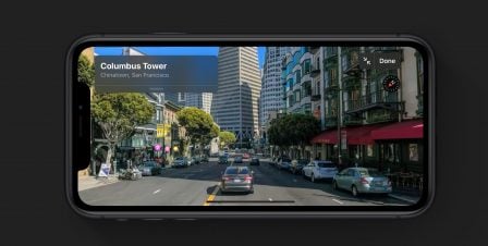 - nouveautés Apple Plans : Apple a relevé de nouvelles données aux États-Unis, sur terre et dans les airs, pour un rendu plus moderne et précis des cartes, mais aussi une vue type Street View de Google Maps (disponible fin d’année au xUS, l’an prochain dans certains pays). L’app profite aussi de nouvelles fonctionnalités, dont la possibilité de partager son heure d’arrivée avec des amis
