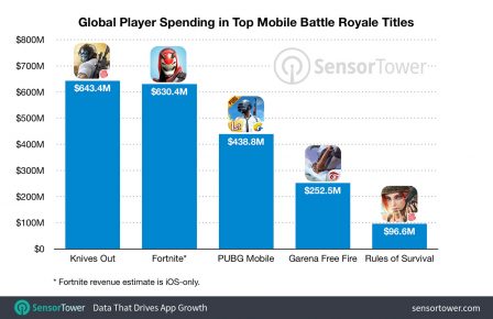 Le premier en termes de revenus de cette liste est le titre Knives Out avec 643 millions de dollars, suivi en deuxième position de Fornite avec 630 millions de dollars. Il est cependant fort probable qu’en réalité, Fornite soit le jeu le plus rentable de cette catégorie.