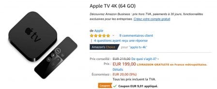 Apple TV 4K 64 Go à 190 €au lieu de 219 € chez Apple