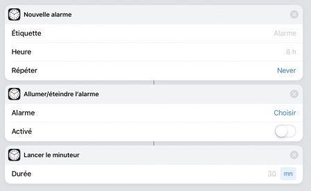 - Allumer/éteindre l’alarme : pour désactiver ses réveils du matin dans cadre d’un raccourci pour le weekend par exemple
