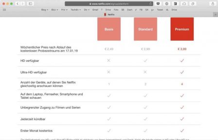 D’après le site allemand Cashy Blog, Netflix testerait actuellement trois forfaits hebdomadaires en Autriche. Ils reprennent les trois forfaits mensuels, mais ils sont facturés à la semaine, au lieu du mois.