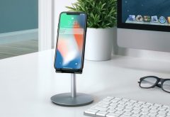 - Support pour iPhone et iPad à angle réglable : pour élever son appareil iOS à hauteur des yeux sur un bureau ou un buffet, pratique pendant la recharge par exemple, disponible ici pour 16,99 €