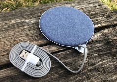 - Chargeur tissu sans fil Qi : élégance de mise pour cet autre chargeur sans-fil Qi, en tissu et métal cette fois-ci. On l’a testé en images ici, il est disponible là pour 25,99 €