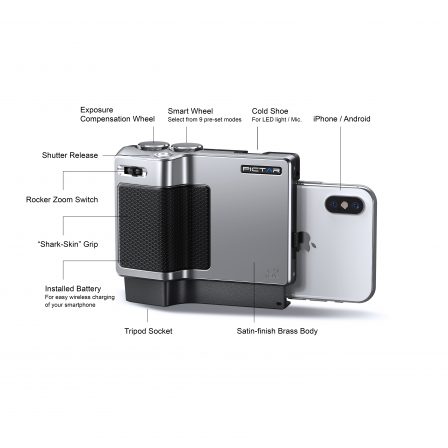 Le Pictar Pro comporte un emplacement, dans lequel l’utilisateur vient glisser l’iPhone, même les nouveaux modèles, dont le XS Max. Il est doté de réels boutons physiques, pour gérer des paramètres lors de la prise de photo, comme avec un véritable appareil photo numérique dédié.