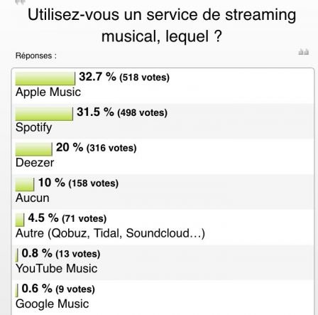 • 1er : Apple Music, avec 32,7 % des votes