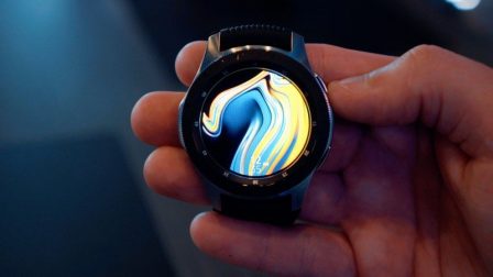 Samsung a aussi présenté une montre connectée, la Galaxy Watch. Laquelle propose un design circulaire, avec une bordure qui peut tourner pour contrôler différents éléments de la montre.