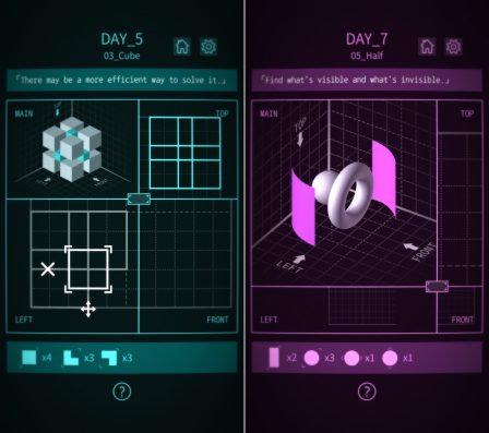Viewport, signé du développeur indépendant Sung-Oh Park, propose de décomposer des figures 3D sur 3 plans, en usant de nos capacités de rotations mentales. Le concept est simple, mais le jeu affiche différentes distinctions obtenues lors de salons et compétitions du jeu mobile. Il est donc probablement plus profond et prenant qu’il n’y parait de prime abord.