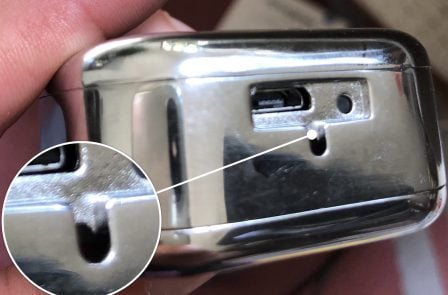 Le petit trou situé à coté de la prise sert pour la mise en route et le reset du cadenas, c’est là que l’aiguille trouve son utilité.