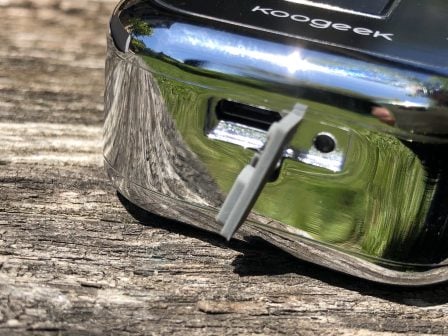 Sur le dessous, un cache en caoutchouc protège une prise, celle-ci permet de recharger en 2 h environ, une batterie qui est annoncée comme offrant un an d’autonomie. Dur à tester dans le temps imparti ici, mais sur environ deux semaines et même un peu plus, on est passé de 100 à 97 % de niveau de charge !